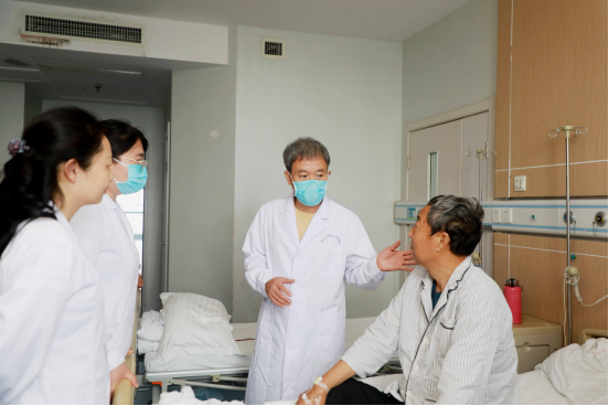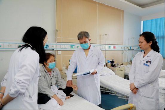 义诊结束后,郑以州又在医务人员的陪同下进行了教学查房。他仔细听取主管医生病情介绍,耐心询问患者病史,进行查体,并与医务人员对患者目前的治疗思路和要点、用药细节以及后期治疗方案进行分析交流,为大家带来全新的临床诊疗理念,科室医务人员纷纷表示收获满满。