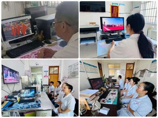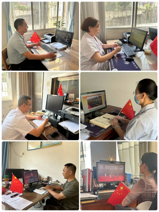 与此同时,坚守在岗位上的值班人员,也在各科室通过手机、电脑等设备,在工作间隙观看阅兵仪式。大家全神贯注,目光紧紧跟随屏幕上的画面,虽然他们身处不同科室,但同样被阅兵的盛大场面所感染,深刻感受国家强盛的磅礴力量。