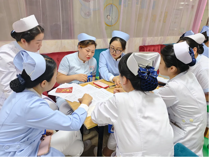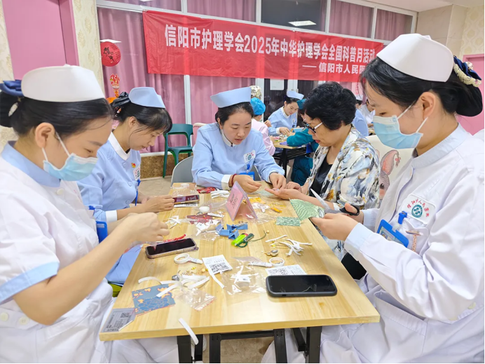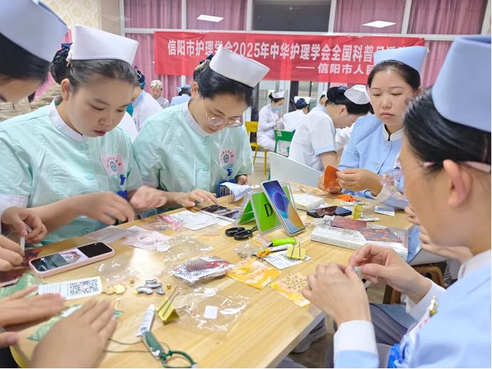 活动创新采用“阅读+实践”模式推动健康科普从单向输出变为沉浸式体验。“飞花令”互动游戏巧妙融入诗词与健康关键词,迅速拉近参与者距离;分组研讨环节中,护理人员围绕患者常见问题提炼出七大科普主题,涵盖儿童生长发育、秋季保健、疾病预防等实用内容,切实推动专业知识的通俗转化;“宋锦挂坠DIY”环节则将非遗文化与健康寓意相结合,在手工实践中传递“平安健康”的理念。