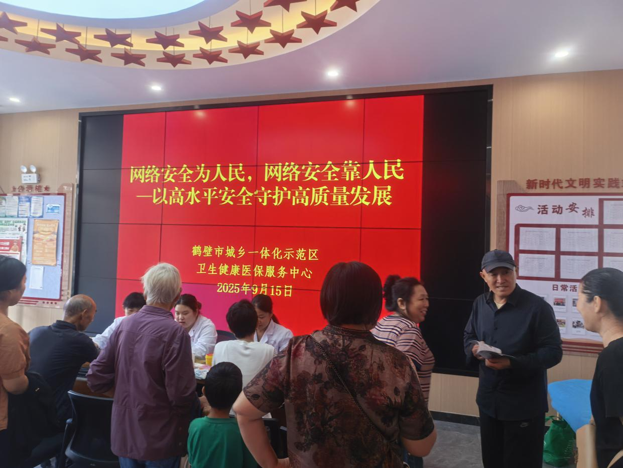 2025-9-16 来源:医药卫生网 - 医药卫生报 浏览:次医药卫生网讯(记者王平 通讯员李欣鑫)9月15日,鹤壁市示范区卫生健康医保服务中心聚焦不同群体需求,通过“进机关+进养老机构”双场景联动,扎实开展网络安全宣传活动,织密基层网络安全防护网。