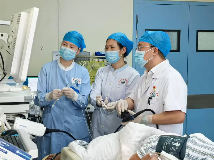 早癌筛查是守护生命健康的防线。张刚组建消化道早癌诊疗团队,优化筛查流程,只为让高危人群少等一分钟;他细化诊断标准,从黏膜色泽变化中捕捉病灶踪迹,一步步啃下“提高早癌检出率”的硬骨头。近3年,科室早癌诊断率从12.3%跃升至37.5%,远超全国平均水平。面对消化道大出血患者,他更是冲在前线的“拆弹专家”,在汹涌的出血中精准锁定病灶,成功找到出血点止血,待患者生命体征平稳回升,他放下手中的内镜器械,眼底透着疲惫却难掩欣慰地说:“能让患者转危为安,一切都值了。”