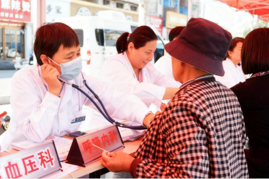 活动现场,医护人员们有条不紊地为前来就诊的群众提供免费血压测量、血糖检测、心肺听诊等基础检查活动,并针对心脑血管疾病、糖尿病、骨关节病等疾病进行健康指导。