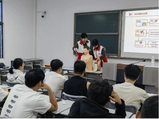 2025-9-28 来源:医药卫生网 - 医药卫生报 浏览:次医药卫生网讯(记者朱晓娟 通讯员丁一纯)9月25日,三门峡市红十字会受邀走进河南科技大学应用工程学院,为60余名学生讲授一堂心肺复苏和自动体外除颤器使用的专题课程。此次授课,是市红十字会和应用工程学院的一次创新性合作,把应急救护知识融入学校《工业环境应急救援和公共卫生安全》公选课,使学生们掌握在工业环境下遇到常见突发伤害事件的应急救护理论和技能。