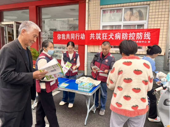 该中心组织专业技术人员向群众发放健康教育防治传染病手册,并讲解什么是狂犬病、狂犬病的临床表现、狂犬病的危害等知识,重点讲解狂犬病的预防知识及被动物咬伤后的正确处理方法。