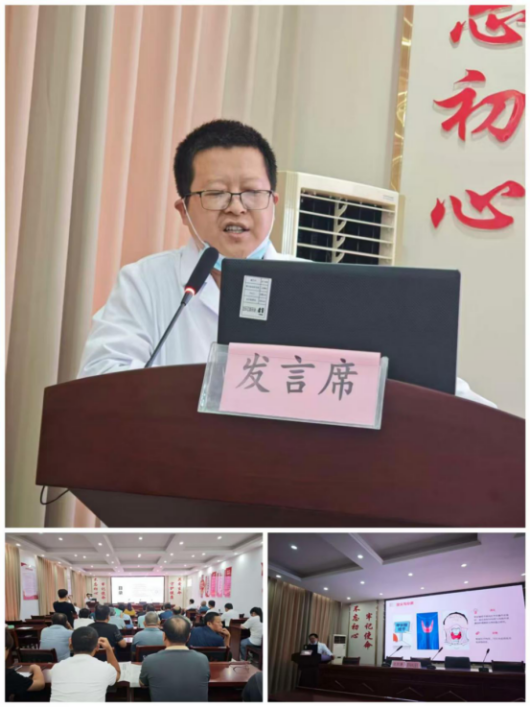 健康讲堂,科普知识入民心。在卫生院三楼会议室,一场别开生面的健康大讲堂正在进行。油田医院专家潘运高、张洪涛分别围绕《良性前列腺增生诊疗规范:基层视角与前沿进展》《乳腺科普》通过现场授课、互动问答等形式,为80余名卫生院职工和乡村医生讲解核心知识。同步举办的基层医务人员专题研讨会上,专家团队就《基层高血压防治指南》进行深度解读,推动最新诊疗规范落地。