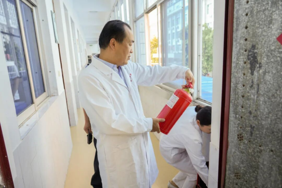 本次检查紧紧围绕“防风险、查隐患、保安全、迎国庆”安全生产要求,坚持问题导向,深入一线实地查看。院班子成员一行先后对门诊大厅、住院部、医学检验科、病案室、内镜室、配电间、消防控制室、药品库房、供氧中心等重点部位进行了细致排查,详细查看了消防设施设备维保情况、疏散通道和安全出口是否畅通、节假日期间人员值班值宿安排、各项巡查记录是否齐全等情况,并现场考核职工消防知识及应急事件响应速度,对于检查中发现的问题,现场提出整改意见,要求相关科室立即整改,确保节日期间医院的安全生产。
