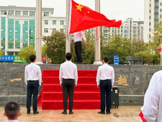 随着护旗手迈着铿锵步伐护卫五星红旗走向升旗台,仪式迎来高潮。雄壮的《义勇军进行曲》奏响,全场肃立行注目礼,凝望着五星红旗冉冉升起,迎风飘扬,共同祝愿祖国繁荣昌盛。