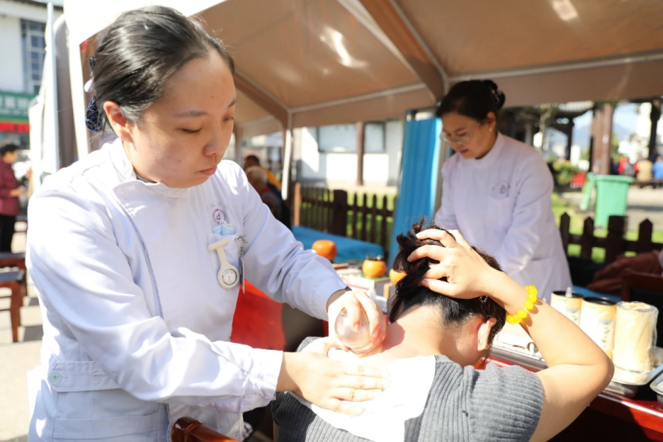 在义诊区,来自栾川县中医院的6位资深中医专家被热情的群众团团围住。他们耐心细致地为前来咨询的居民进行辨证施治,提供个性化的健康指导和诊疗建议。当日接受义诊服务的群众近500人次,有效满足了基层百姓对优质中医药服务的迫切需求;体验区内,刮痧、拔罐、耳穴压豆、艾灸等中医非药物疗法演示与体验活动吸引了大量好奇的目光。超过260人次参与了体验,真切感受到了中医技术的独特优势;中药材展示区,专业人员不仅详细讲解药材的性味、功效,还现场演示了部分中药的炮制过程,让围观者直观了解到中药从原生药材到临床应用的精细加工环节,互动场面热烈;同时,医院依据时令特点与本地群众体质状况,精心准备了4款养生茶饮和2种药膳粥方,供现场群众免费品尝。在广场中央,八段锦展演队的队员们动作整齐划一,刚柔并济,完美展现了中医传统健身功法的神韵。表演结束后,队员们走入人群,耐心指导感兴趣的群众一起练习,使众多群众切身感受到了中医养生功法健身强体的积极作用。