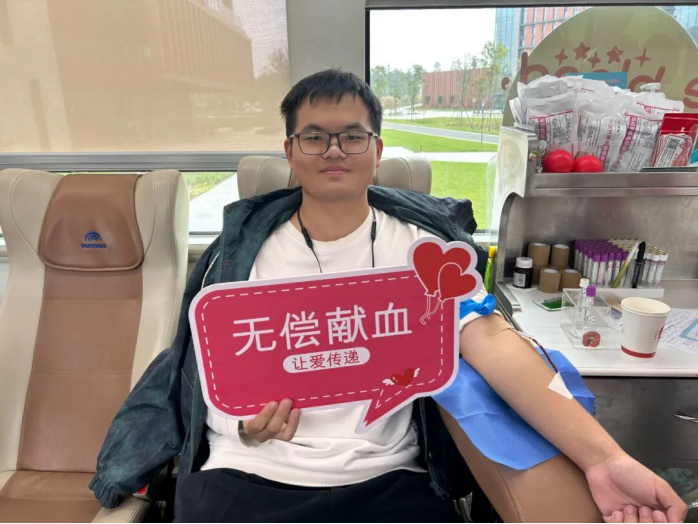 为这份沉甸甸的爱心增添一抹温暖的亮色。活动现场,信阳市中心血站为每位参与无偿献血的同学都准备了一份特别“回礼”。除了常规纪念品外,“爱心盲盒”抽奖和趣味套餐小游戏成为最受欢迎的惊喜环节,让奉献的成就感与收获的喜悦交织升华。更有不少寝室同学集体“组团”前来,全员挽袖、热血同行,展现出信院学子奉献担当的青春风采。