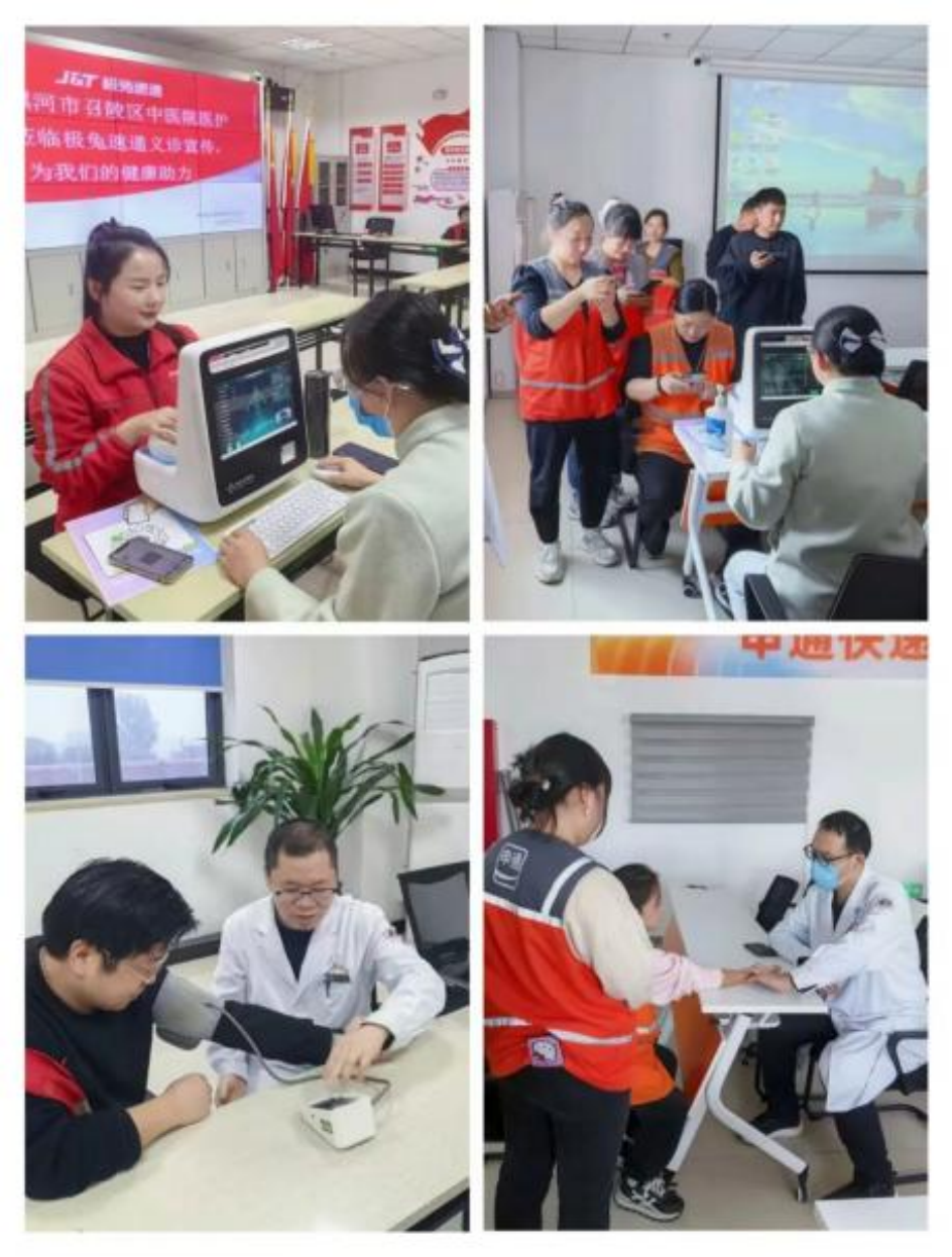 讲座结束后,专家团队立即投入义诊服务。活动现场,该院先进的中医四诊仪为快递员们提供了体质辨识与健康评估服务。尚营超耐心进行把脉问诊、辨证施治;高萃玲亲自为颈肩腰腿痛的员工进行推拿理疗,专业的手法有效缓解了现场员工的不适症状,收获广泛好评。
