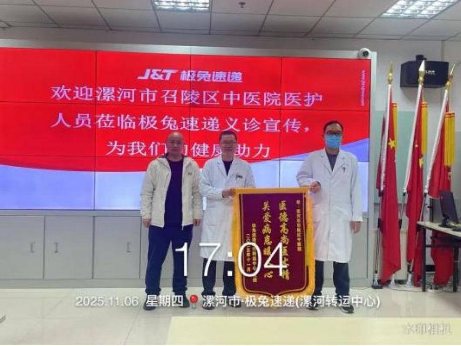 活动现场,极兔速递公司对本次活动给予了高度认可,特向召陵区中医院赠送锦旗,表达对该院送健康进企业、真情关爱快递从业者的诚挚谢意。