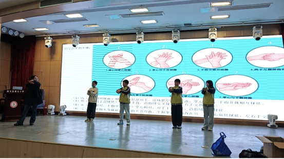 活动现场,信阳市疾病预防控制中心(信阳市卫生监督所)免疫规划科科长、市级健康科普专家张雪以“认识传染病,做健康小卫士”为主题,为同学们系统讲解了传染病防治知识。专家通过形象生动、简洁明了的语言,讲述了传染病的危害、法定传染病的种类以及传染病的流行环节,针对老师和学生们重点关注的问题,又详细科普了冬春季常见呼吸道传染病类型和特点,并把重点落在了“如何防控”上,专家详细阐述了勤洗手、常通风、戴口罩、保持社交距离等核心措施,并特别强调了接种疫苗的重要性,指出疫苗是预防传染病最经济、最有效的手段,鼓励同学们相信科学,按时接种。讲解过程中穿插问答互动,发放健康科普折页和小礼品,同学们踊跃发言,进一步巩固了所学知识。