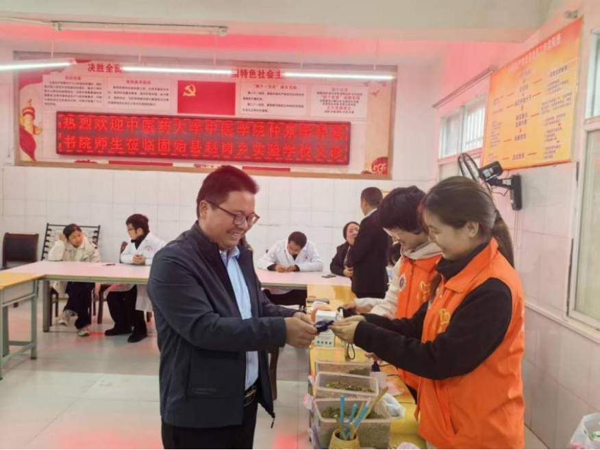11月10日下午,河南中医药大学博士服务团一行活动首站走进赵岗乡实验学校,一场别开生面的中医药文化进校园活动在此展开。师生们深入教室,用生动易懂的语言为学生讲解中医理论、常见中草药辨识等知识;手把手指导学生制作兼具养生功效与文化内涵的中药香囊,让孩子们在实践中感受中医药魅力;现场教授八段锦等传统养生功法,引导学生养成健康生活习惯。同时,服务团为师生提供体质辨识、健康咨询等服务,将专业医疗关怀送到师生身边。