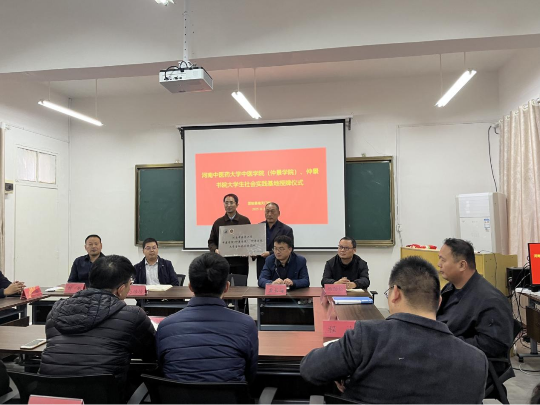 活动开始前,中西医科研党支部侯俊林代表学院向南天门村党支部书记程积松授予“河南中医药大学中医学院(仲景学院)、仲景书院大学生社会实践基地”匾牌。