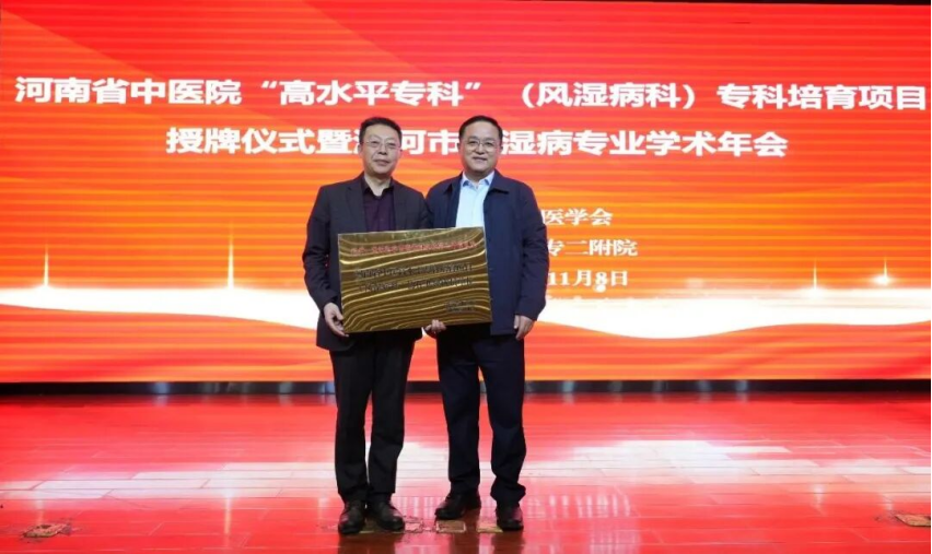 会上,王齐超代表漯河医专二附院为孟庆良颁发特聘专家聘书。孟庆良代表河南省中医院为漯河医专二附院“高水平专科”(风湿病科)专科培育项目授牌。此次授牌搭建起河南省中医院与漯河医专二附院的专科共建桥梁,不仅将推动漯河地区风湿病专科的体系化发展,更有望通过中西医结合诊疗模式的深化,为漯河市风湿病患者带来更优质、便捷的医疗资源。
