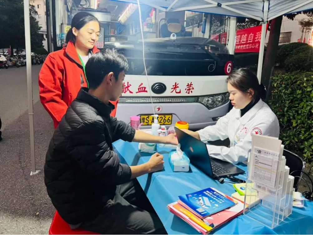 采血点前,爱心静静汇聚。同学们在工作人员的引导下有序完成献血流程,涓涓热血,汇成生命暖流。不少同学是第一次参与,眼中虽带紧张,手中却传递坚定。现场设有暖心义诊,为师生提供健康咨询,传递出“奉献者亦被关怀”的温情。一袋热血,一份情谊,青春在此刻因奉献而闪光。