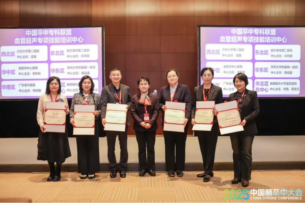 华扬为六大中心的主任颁发荣誉证书并肯定了他们在血管超声人才培养、技术推广等方面的卓越贡献。华扬说,这些中心是血管超声领域的“黄埔军校”,它们的成功经验为全国同道的规范化建设与发展树立了标杆,将激励更多机构投身于高质量的人才培养工作中,共同夯实我国脑卒中防治的基石。期待未来能有更多专家和优秀的青年医师脱颖而出,能有更多的培训中心发挥引领作用,共同推动我国血管超声事业迈向新的高峰。