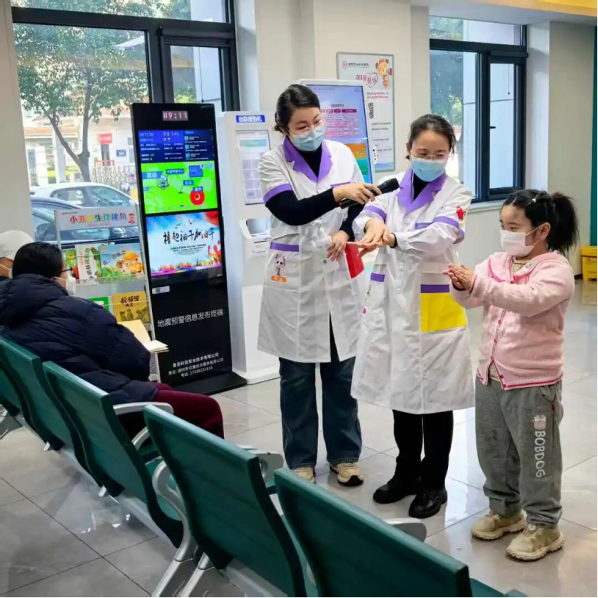 医院行政总值班感控科主任文海燕,手把手教学“七步洗手法”。“先搓手心抓泡泡,再搓手背像挠痒痒,最后手腕也要转一转哦!”她一边做着可爱的动作演示,一边带领孩子们念“内外夹弓大立腕”的口诀,孩子们睁着圆溜溜的眼睛,听得格外认真,小脑袋还跟着口诀轻轻点头。