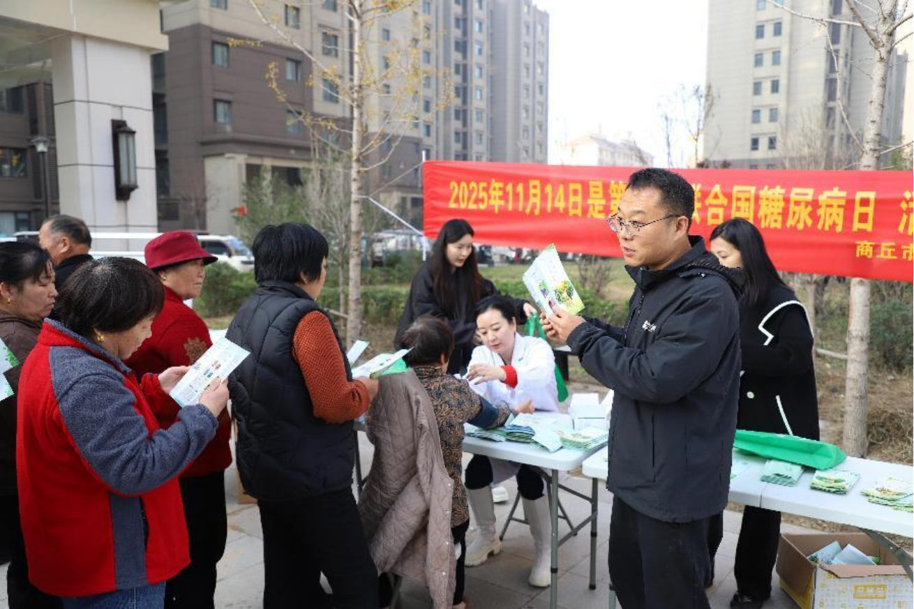 11月14日,商丘市卫生健康委、市疾控中心组织工作人员走进和畅社区开展世界糖尿病日主题宣传活动。活动通过悬挂条幅、设置展板、免费测量血糖与血压、发放宣传品等方式,向群众系统讲解了糖尿病的预防、筛查与科学管理知识。针对群众关心的饮食调理问题,分享了“少油少盐少糖少油炸”等健康饮食理念,引导大家将健康理念转化为健康生活技能。
