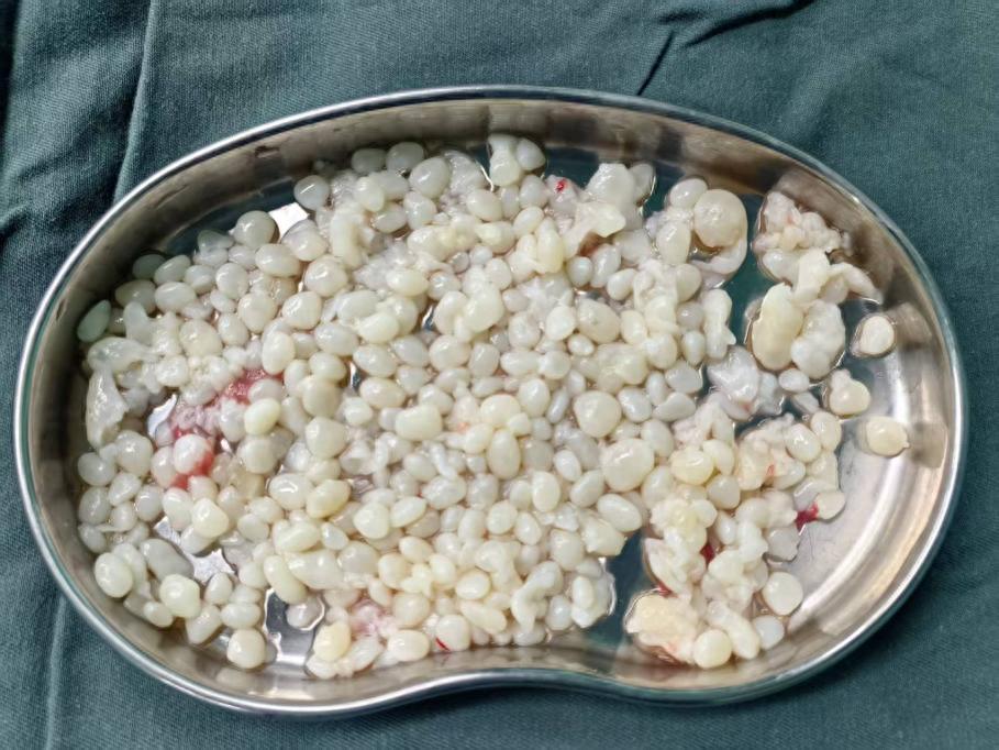 “这些米粒体非常‘狡猾’,会‘躲’在组织的褶皱和缝隙里,所以我们的探查必须像扫雷一样,全方位、无死角。”卢文龙介绍道,他们利用精细的显微器械,在关节镜的引导下,小心翼翼地冲洗、吸引,将这些大小形态酷似“珍珠”的米粒体一颗颗地清理出来,最终取出的总量竟有上百颗之多。