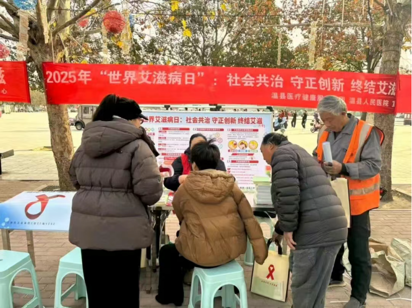 12月1日,世界艾滋病日当天,在温县文化广场,温县人民医院开展的一场“社会共治,守正创新,终结艾滋”为主题的大型宣传活动,吸引了晨练和过往群众的踊跃参与。