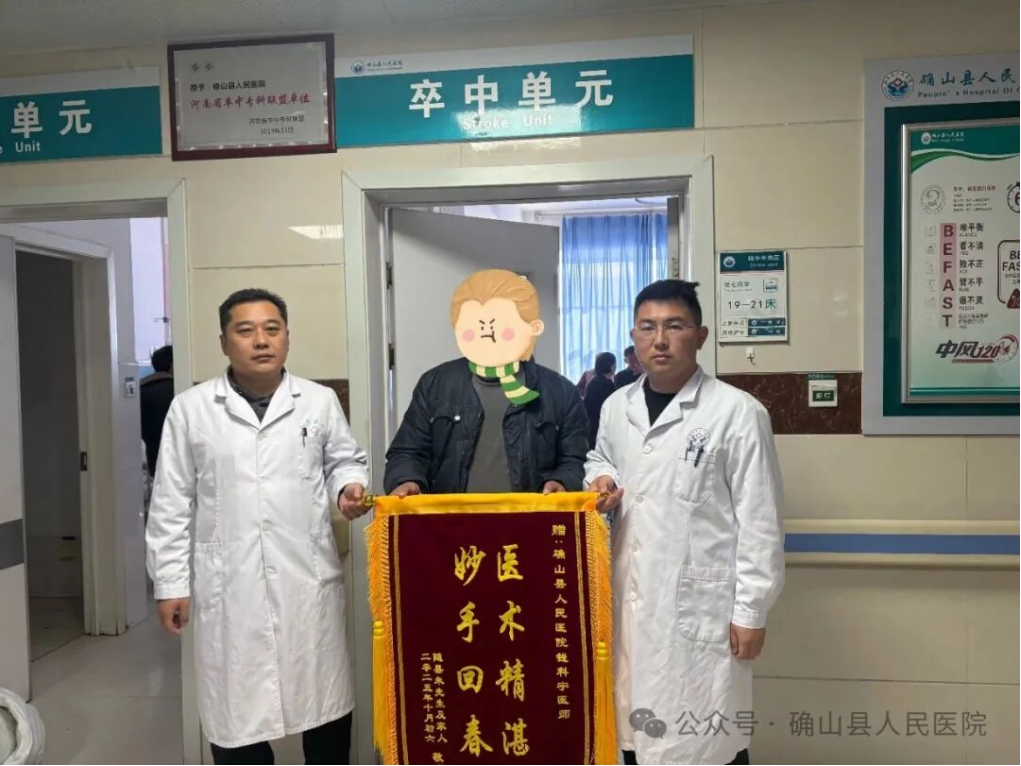 “你们不仅治好了我的病,更救了我们一个家!”出院后,朱先生专程从湖北驾车来院致谢。这面跨越鄂豫两省的锦旗,既是对该院卒中中心“绿色通道”高效运转、多学科协作能力的充分肯定,更见证了“时间就是大脑”救治理念的生动实践。(丁宏伟 刘丽君 苏楠)