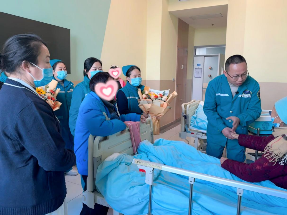 病床上,一对脱离危险的婆媳脸上洋溢着重获新生的喜悦。几天前,她们因一氧化碳中毒与死神擦肩而过;今天,医护人员带着祝福前来回访,用温暖续写这个冬天的生命奇迹。