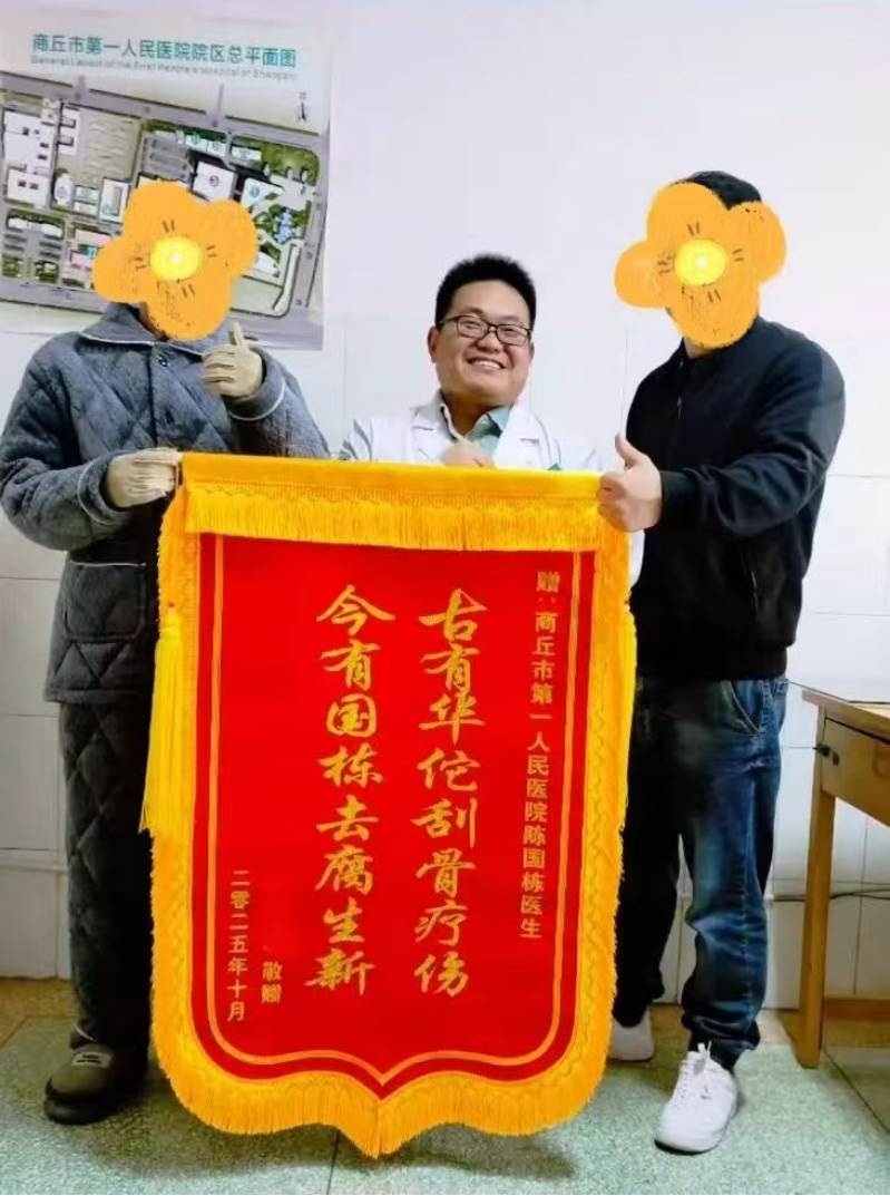 彭先生感慨道,如今他不仅能下床行走,溃烂的肌肤也在逐步愈合,曾经的绝望早已被对未来的期待取代。出院前夕,彭先生和家人特意定制了锦旗,想以此表达最深的谢意:“俗礼太轻,只有这面锦旗,能配得上陈医生的救命之恩。”