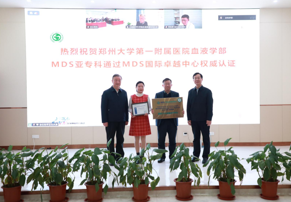 授予郑州大学第一附属医院MDS Foundation卓越中心证书