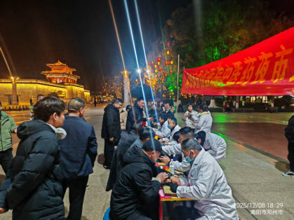2025-12-11 来源:医药卫生网 - 医药卫生报 浏览:次医药卫生网讯(记者乔晓娜 通讯员崔伟)12月8日至9日,由河南省卫生健康委联合九大局主办的“健康中原行·大医献爱心”文明实践志愿服务专项行动邓州站活动举行。邓州市湍河社区卫生服务中心(邓州市骨伤医院)作为重要参与单位,充分发挥骨伤专科特色优势,全情投入系列活动,在古城广场夜场展演义诊、人民公园大型义诊及启动仪式等关键环节展现医者担当,为市民健康保驾护航。