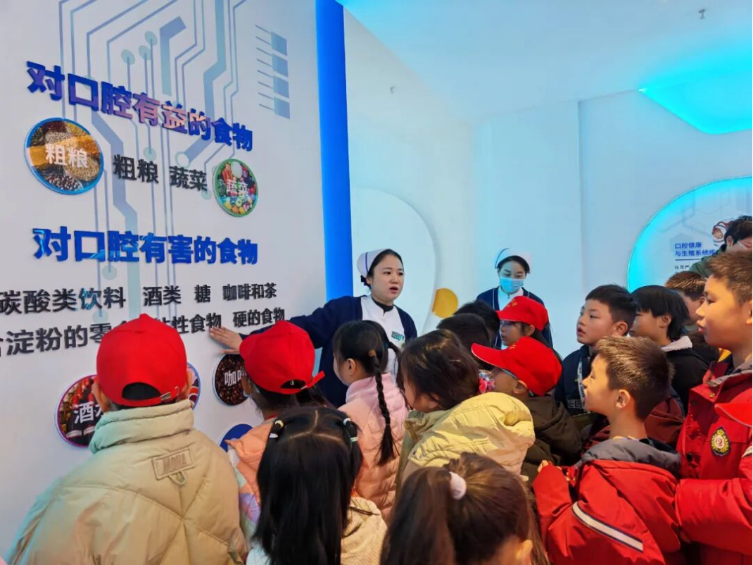 随后,亲子家庭分组走进口腔健康科普馆,通过馆内丰富的知识版面、全息声光电系统和互动体验装置,将抽象的医学知识转化为直观易懂的内容。孩子们在家长的陪伴下,时而驻足观察,时而认真记录,沉浸式地学习了口腔健康知识。医护人员还结合实物展示,详细讲解了龋齿防治、错颌畸形危害、口腔不良习惯纠正及护牙误区等内容。在“牙牙翻翻乐”互动环节中,亲子组队踊跃抢答,答对者获得了精美礼品,现场气氛欢乐而热烈。
