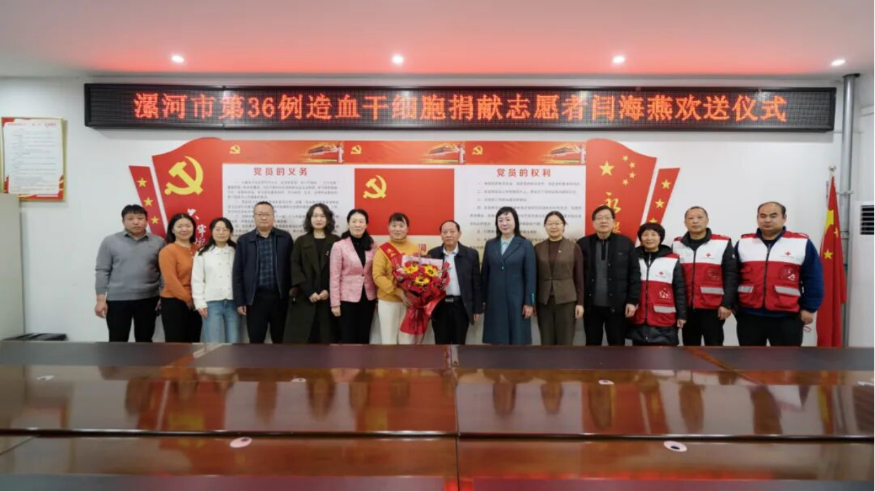 医药卫生网讯 12月23日,漯河市红十字会为即将赴郑州捐献造血干细胞的志愿者,漯河市住房公积金管理中心党建办主任闫海燕举办欢送会。