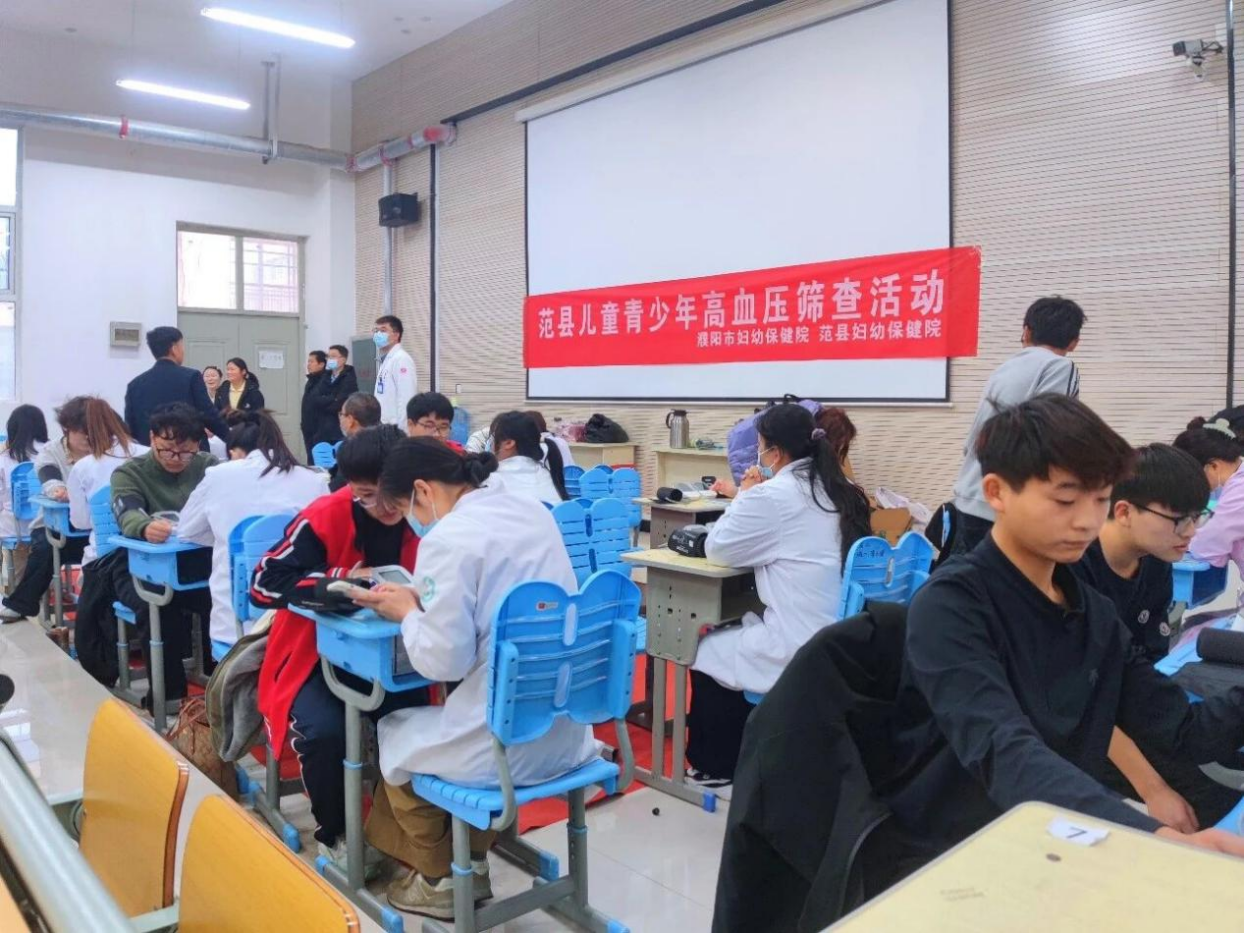近日,濮阳市妇幼保健院组建专业筛查团队,与范县、南乐县筛查机构共50余人,分别深入范县、南乐县定点学校进行高血压筛查。