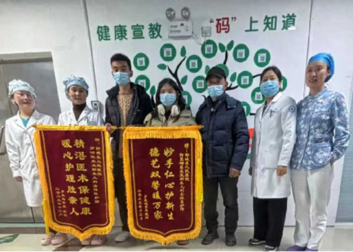 随后,患儿家属专程送来两面锦旗,向医生罗洁、靳惠娜、主任张培霞及NICU全体医护人员表达深深的谢意。
