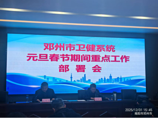 2026-1-1 来源:医药卫生网 - 医药卫生报 浏览:次医药卫生网讯(记者乔晓娜 通讯员海坤 鲁丰平)2025年12月31日下午,邓州市卫健系统流感疫苗接种暨重点工作部署会议在市卫生健康委东院召开,会议深入贯彻南阳市关于传染病防控与医疗卫生高质量发展的最新要求,全面部署当前和今后一个时期重点工作。作为基层医疗卫生服务的前沿阵地,邓州市湍河社区卫生服务中心(邓州市骨伤医院)高度重视,第一时间安排主任、院长崔伟,班子成员、防疫组长赵锐参会学习,深刻领会会议精神,并迅速启动系列贯彻落实工作,以实干姿态筑牢辖区群众健康防线。