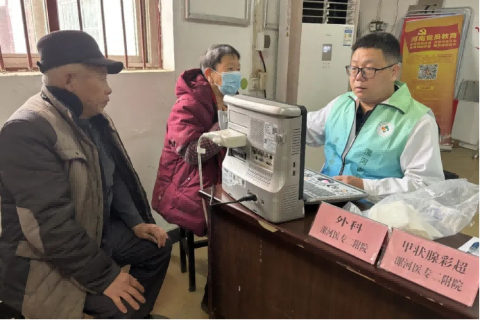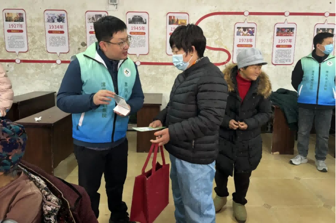 上午9时许,义诊活动正式拉开帷幕,由该院骨科、神内二科、胸外科等多学科青年骨干组成的专家团队,携带甲状腺彩超仪、血压血糖计、骨密度仪等专业设备快速完成场地布置与仪器调试。活动现场,在驻村书记及村干部的有序引导下,村民分批次按流程候诊,秩序井然。诊疗中,医护团队秉持“专业严谨、耐心周到”理念,为村民提供全流程健康服务:护理人员精准检测基础体征并详细记录,彩超医师结合既往病史细致解读报告,专科医师针对基层高发疾病给出个性化诊疗建议,还以接地气的语言普及冬季健康防护知识,同时同步宣传肺部筛查惠民政策并开展专项科普,全方位覆盖群众健康需求。