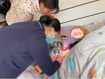 该院针对高龄老人、残疾人、重病卧床等特殊群体,无须患者奔波,只需一个电话预约,医护人员便会携带专业的检测设备,主动上门提供采血检测服务,将健康关怀送到群众“家门口”。