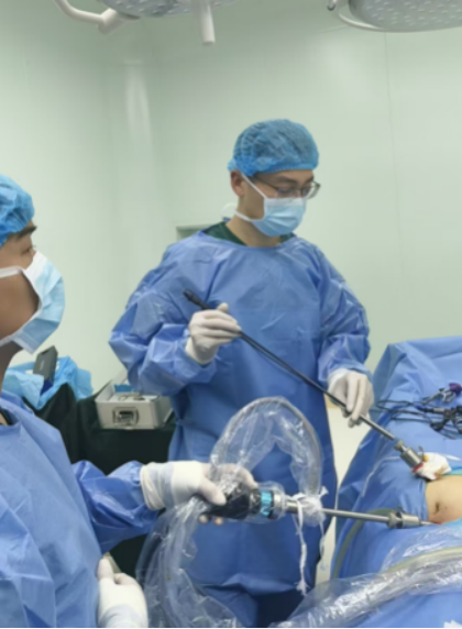 面对复杂的病情,黄启辉凭借精湛的腹腔镜操作技术,带领团队沉着应对,小心翼翼地将索带和肿胀的阑尾切除,随后将肠管复位,抽吸干净腹腔内约200ml的淡黄色渗出液。整个手术过程紧张而有序,每一个操作都精准到位,展现出了极高的专业水准。