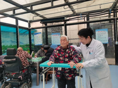 焦作市博爱县金城医养中心让老人们在阳光房里进行锻炼和休闲