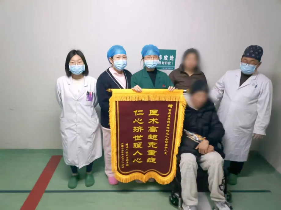 从盛夏到初冬,从命悬一线到康复出院,这段历时近150个日日夜夜的救治历程,凝聚了急诊、神经外科、重症医学科、康复科、麻醉手术科等多学科团队的心血与汗水。而重症医学科在患者最脆弱、最危险的早期阶段提供的强大生命支持,被公认为整个救治链条中至关重要的一环。出院之际,患者家人特赠送一面锦旗感谢重症医学科团队的倾力救治。