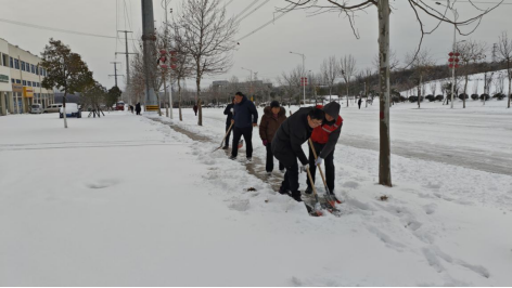 平桥区卫生健康委机关干部职工自觉带上铁锹、扫帚等工具,认真清扫单位门口及周边道路积雪,你一锹我一铲,相互配合,很快就开辟出便捷的通道,便利了周边群众出行。在包保路段龙江路东段,大家干得更是热火朝天,在厚厚的积雪路面上铲出一条行人通行的小路,为辖区广大群众的出行便利贡献了卫生健康的力量。