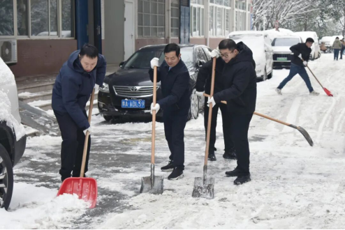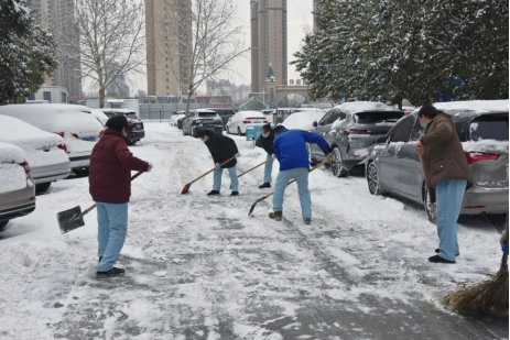 与此同时,负责医院周边路段保洁的环卫工人也赶到现场,和医院职工并肩作战。凛冽的寒风中,大家顾不上搓搓冻红的双手,只顾着加快进度,争取尽早把主干道、出入口的积雪清理干净。