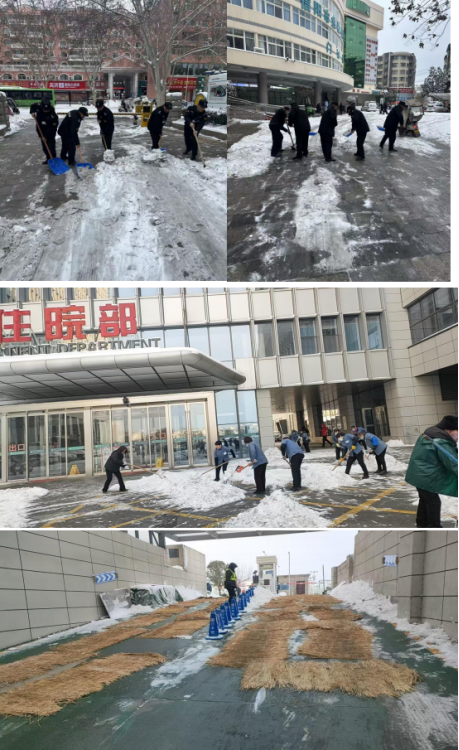 信阳市中心医院:破冰除雪保畅通 保安保洁齐行动