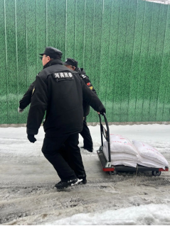 在清雪过程中,保安及保洁队员们不仅关注道路的畅通,还时刻留意医患人员的安全。他们在危险路段设置了防滑警示牌,安排专人进行引导,提醒过往人员小心滑倒。对于行动不便的患者,队员们主动上前搀扶,护送他们安全通过积雪路段。