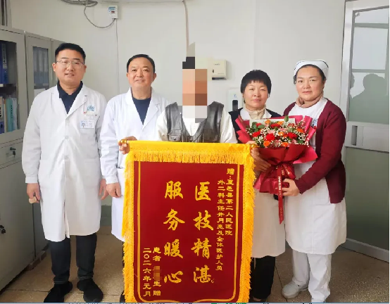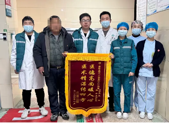 1月26日上午,50多岁的李先生的家属特意定制锦旗送到胸外科主任井晓亮及全体医护人员手中。