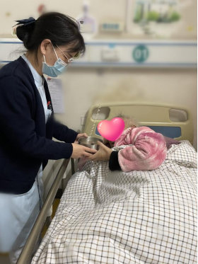 “伯伯,愿这碗粥护您安康,盼您早日康复!”轻声的叮嘱,恰似一股暖流,缓缓淌进患者的心田。8床的张大爷捧着粥碗,眼眶微微泛红:“真没想到,住院还能喝上这么暖心的腊八粥!谢谢你们,再忙还惦记着我们!”