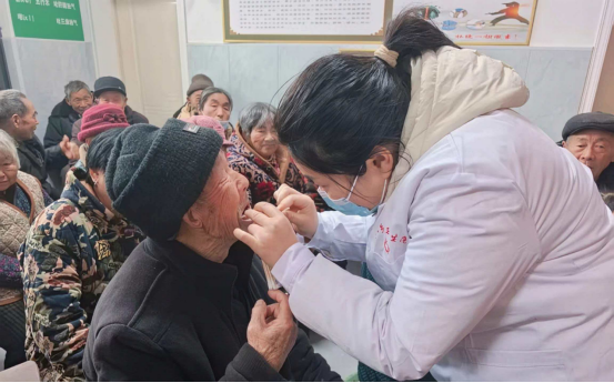 各科室团队根据群众年龄、健康状况精准分流,以“义诊+咨询+科普”三位一体的模式靶向服务。内科团队聚焦65岁以上老年群体,重点开展血压、血糖检测,细致解读既往病历,针对高血压、糖尿病等常见慢性病,逐一给出用药调整、饮食搭配等专业建议。耳鼻喉科医生专门为儿童、老年人及过敏体质群众进行听力筛查、鼻腔检查,深入浅出普及过敏性鼻炎预防常识。中医科医生通过望闻问切,为气血不足的老年人及颈肩腰腿痛患者提供针灸、推拿等理疗服务,并量身定制养生药方。口腔科医生则为各年龄段群众开展口腔健康检查,手把手指导正确刷牙方式,讲解龋齿预防关键要点。针对村里行动不便的独居老人,义诊团队还主动提供上门服务,携带便携式检查设备入户开展健康筛查,确保健康服务不遗漏。