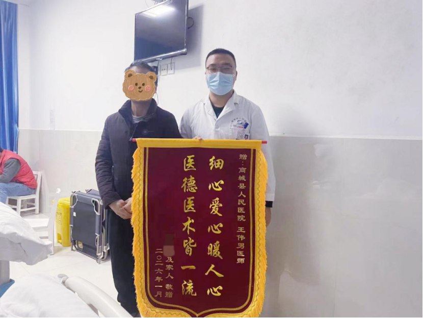 2026-1-31 来源:医药卫生网 - 医药卫生报 浏览:次医药卫生网讯(记者王明杰 通讯员徐坤冉 杨翔)近日,一位曾因延髓梗死致四肢瘫痪、失语的重症患者的家属,将两面锦旗送至商城县人民医院康复医学科,以感谢医护人员对其父亲住院康复期间的精心治疗和优质护理。这份沉甸甸的谢意见证了一段医患同心的温暖康复故事。