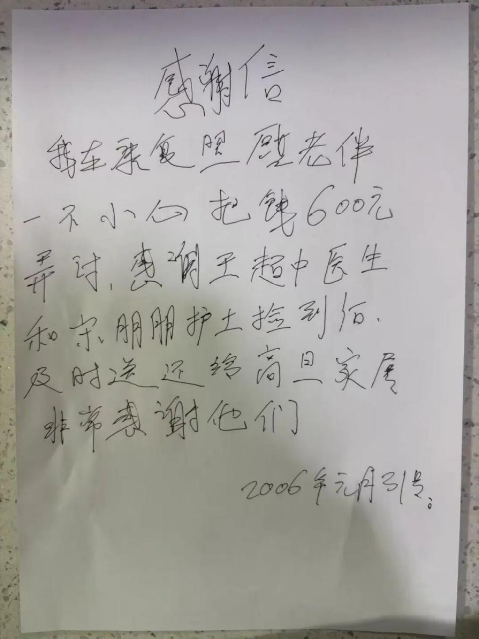 就在他们焦急万分、四处寻找时,王超中和宋朋朋在走廊发现了遗落的钱包。他们深知这笔钱对患者家庭的重要性,立即通过包内的信息迅速联系到了失主李大爷。当接过失而复得的钱包时,李大爷激动得热泪盈眶,一时竟说不出话来。