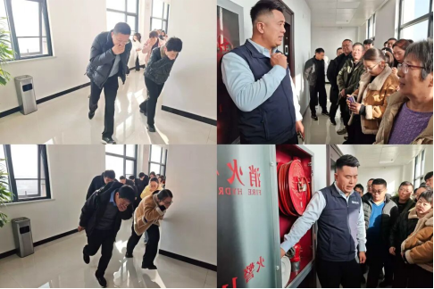 疏散演练模拟办公区域突发火情场景,警报响起后,各应急小组迅速到位,切断电源、启动预案。全体职工在引导员指挥下,用湿毛巾捂住口鼻、弯腰低姿,沿预定疏散路线快速有序撤离至指定安全区域,全程无拥挤、无遗漏,疏散流程顺畅高效。